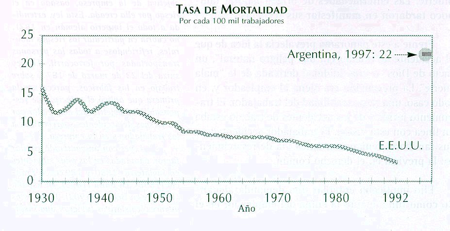 Nuestro país no escapa a esta realidad. La escasa información disponible permite afirmar que las políticas aplicadas en el pasado no han sido eficaces en reducir la siniestralidad laboral al mismo ritmo que en otros países industrializados. Datos disponibles para los Estados Unidos revelan que las muertes por accidentes han descendido significativamente. Esto demuestra que los sistemas de riesgos del trabajo modernos han alcanzado resultados muy importantes, alcanzados en términos de proteger al trabajador tanto en la faz reparatoria como en la reducción de la siniestralidad laboral.